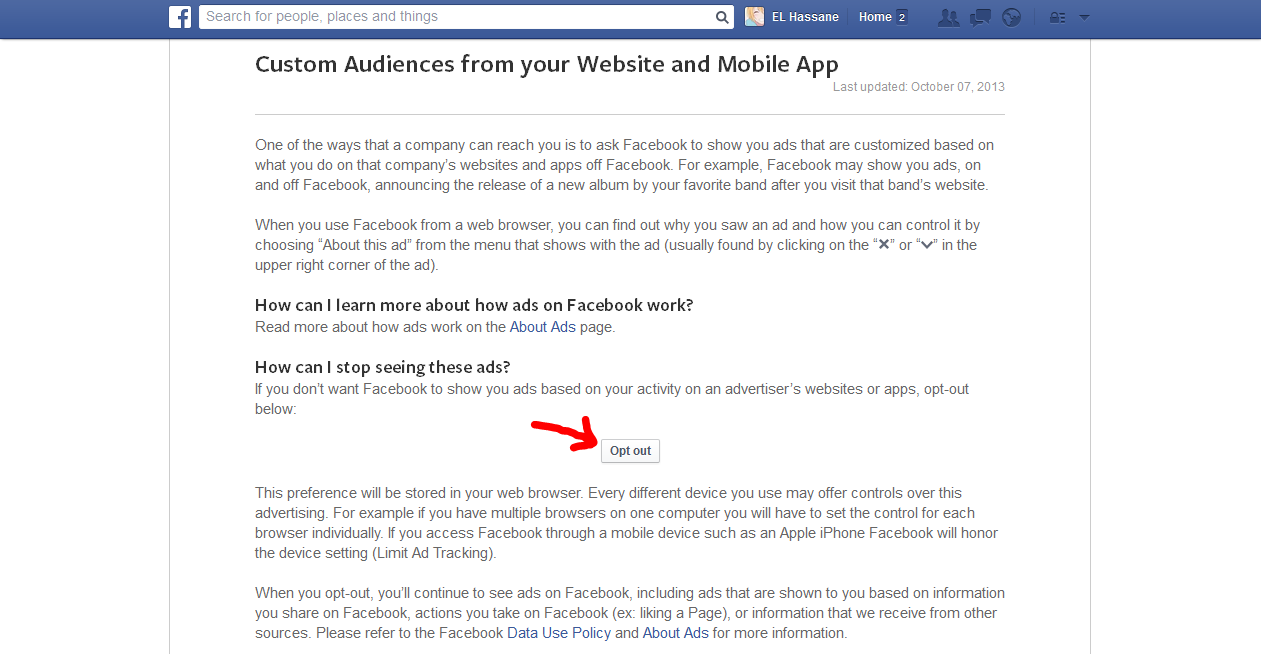 تقوم بحذف الخاصية عن طريق الضغط على Opt out