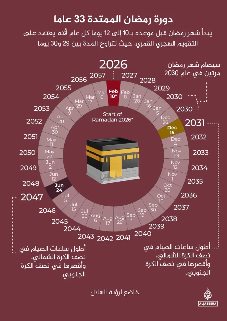 يعكس رمضان 2026 صورة واضحة لتأثير الجغرافيا والفلك في حياة المسلمين اليومية، إذ يعد من أكثر مواسم الصيام اعتدالا خلال الدورة الزمنية للشهر الفضيل.