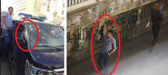 و هذه صورة أيضا ، نفضح فيها المسلح الذي يقف أمام من يلبس شورت برمودة ، للوهلة الأولى تشعر أنهم مدنيين مسلحين و لكن ماذا بعد هذه الصورة ، فهو نفس الشخص بنفس القميص الذي يركب ميكروباص الداخلية من الأمام (بجوار السائق) و الدوائر الحمراء توضح .
