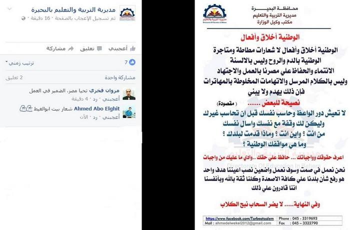 وصف بيان رسمي صادر من مكتب وكيل وزارة التربية والتعليم بالبحيرة مساء اليوم منتقديه بالكلاب النابحة و نافيا عنهم الوطنية مما أثار حفيظة المواطنين المتابعين للصفحة الرسمية لتعليم البحيرة علي موقع التواصل الاجتماعي الفيس بوك .