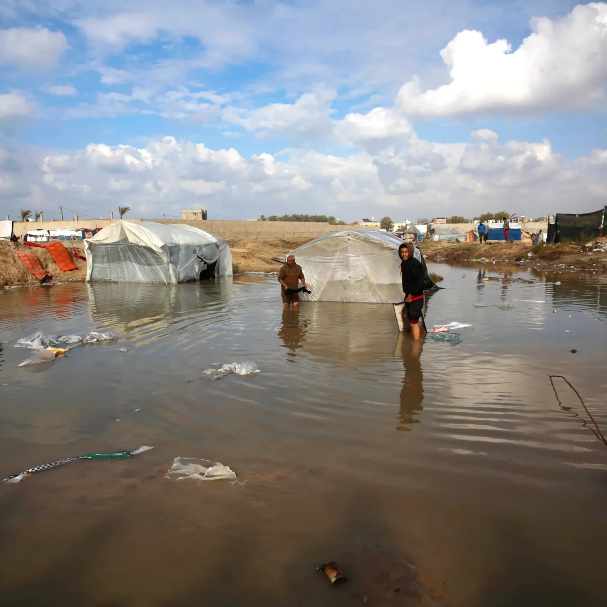 غرقت مئات خيام النازحين في مواصي خانيونس وفي مدينة غزة وعلى شواطئ القرارة ودير البلح الليلة الماضية، مع بدء الساعات الأولى للمنخفض.