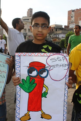 وقفة حاشدة لأطفال وبنات الإخوان بالمحلة فى اليوم العالمي لمكافحة التدخين (مصور)
